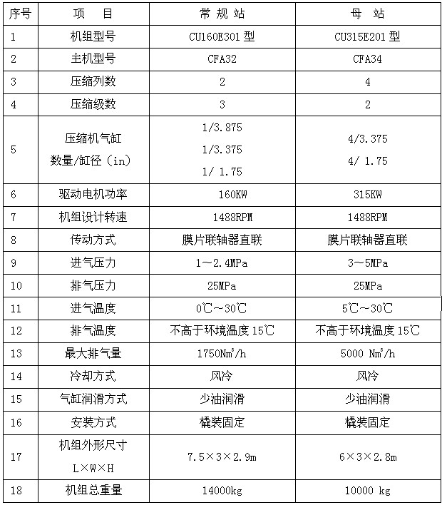 四、典型的CNG常規(guī)站及母站技術(shù)參數(shù)表