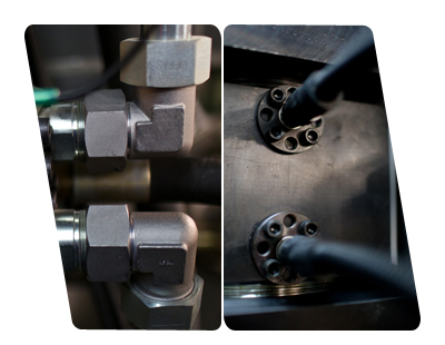 高壓油管接頭: 軟管使用萬向錐密封接頭 彎曲自然,隔振性好 距離傳感器: 精確位置換向,設(shè)備運行更穩(wěn)定 排氣量有保障